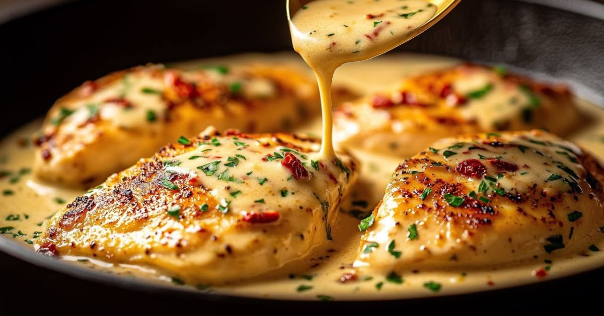 The recipe combines tender chicken breasts with sun dried tomatoes, garlic, cream, and herbs to create a restaurant style meal right in your own kitchen. It’s simple to prepare and works perfectly with pasta, rice, or mashed potatoes.